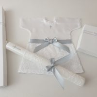 Poseban komplet ukrašen čipkom. U kompletu je deblja visoka svijeća promjera 3,2 cm i visine 34 cm. Možete odabrati i deblju nižu svijeću promjera 4cm i visine 26 cm. Krsna košuljica je simbol čistoće koja se dobija kršenjem. Ona se ne odijeva nego se samo prisloni na krštenika za vrijeme obreda. Veličina košuljice je univerzalna, dužina je oko 30 cm, a širina kod rukava također oko 30 cm. Košuljice su od bijelog satena, ukrašene bijelom čipkom. Natpisi su rađeni bojom za tkaninu, nisu našiveni koncem.